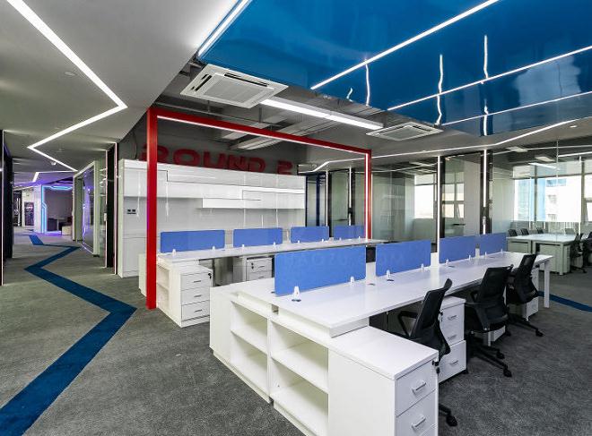 開放式工位是一個敞開式的辦公區(qū)域,以固定的工位來出租給不同的客戶,每一張辦公桌配有帶鎖文件柜和辦公椅。