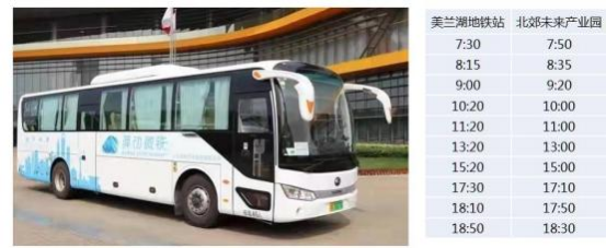 北郊通勤班車。園區(qū)于 2021 年 12 月正式開(kāi)通免費(fèi)班車服務(wù), 每天 10 班次,從園區(qū)到美蘭湖地鐵站來(lái)回。滿足園區(qū)企業(yè)每天上下