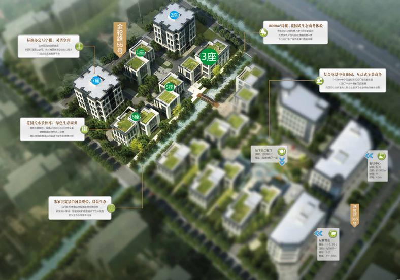 中關(guān)村虹橋中心位于上海長寧區(qū)虹橋臨空經(jīng)濟(jì)園區(qū)內(nèi),毗鄰臨虹路,金倫路、廣順北路。項目占地51225平,總建筑面積165513平,由九棟總部獨棟和5棟甲級寫字樓組成。項目容積率2.0,總的綠地面積18000平,停車位共有1025個。