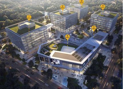 三、東虹橋中心項目設(shè)計:虹橋新地標(biāo),空港“動力系”總部商務(wù),東虹橋商務(wù)首發(fā),天華建筑設(shè)計有限公司擔(dān)綱設(shè)計,整體建筑立面以“速度與激情”為靈感退層、折線、交錯,連廊,仿佛誤入多維時空;4號樓為美國LEED綠色建筑認(rèn)證體系金級;