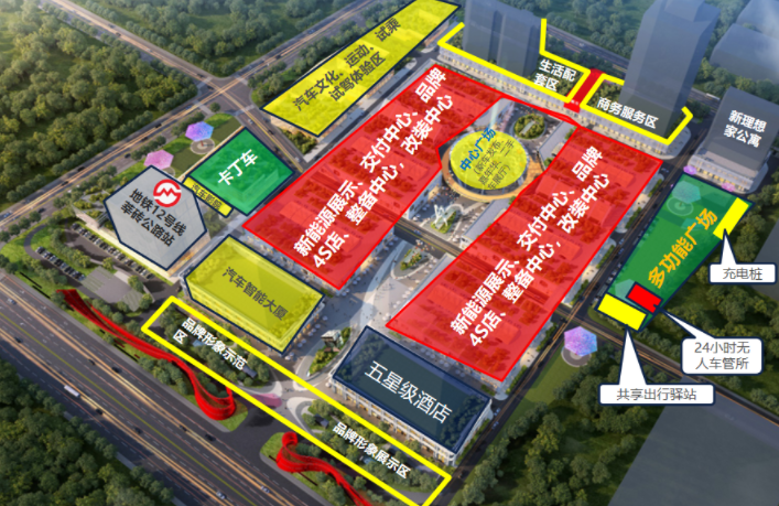 構(gòu)建新能源汽車體驗(yàn)中心、交付中心、維修鈑金中心、試乘試駕中心等為一體的新能源汽車品牌聚集地