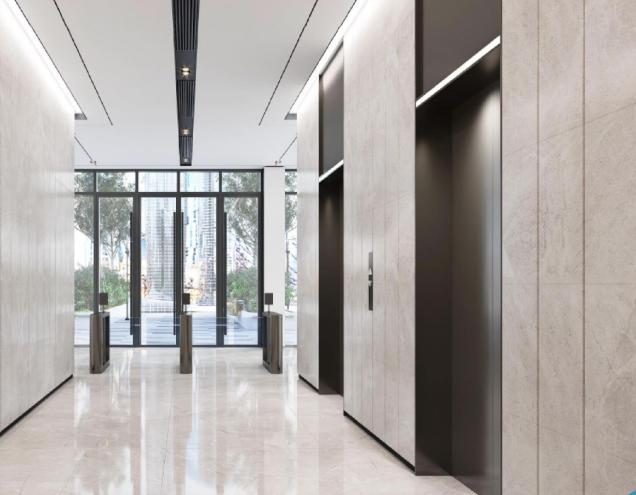 9m挑空精裝大堂.現(xiàn)代大氣,部通力電梯高效直達(dá),梯速 1.75m/s,高效通行,公共區(qū)域高品質(zhì)精裝交付