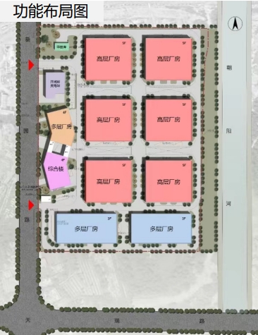 6棟5層獨棟廠房,層高4.5-6.8米,1-4層荷載10KN/㎡,5層荷載5KN/㎡,單層面積約2,800m