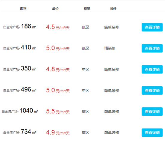 白金灣廣場(chǎng)辦公室出租及價(jià)格
