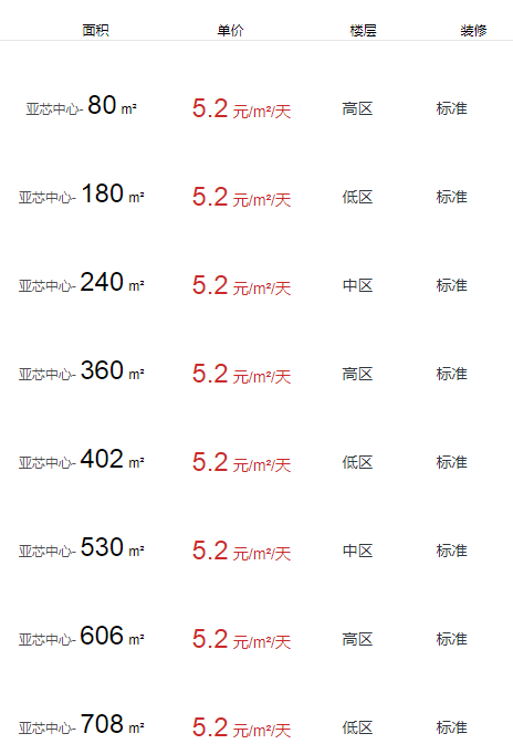 亞芯中心園區(qū)辦公室出租及租金