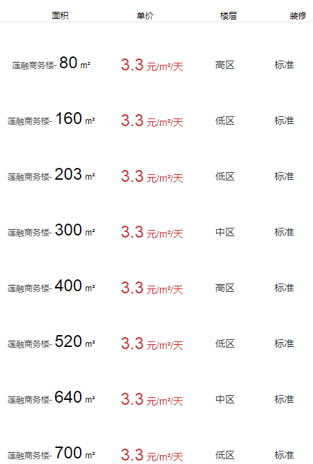 蓮融商務(wù)樓辦公室出租及租金