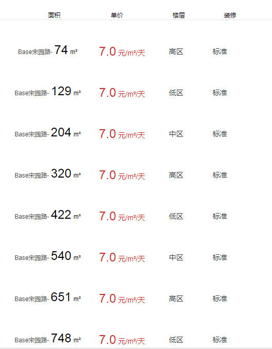 base宋園路辦公室出租及租金