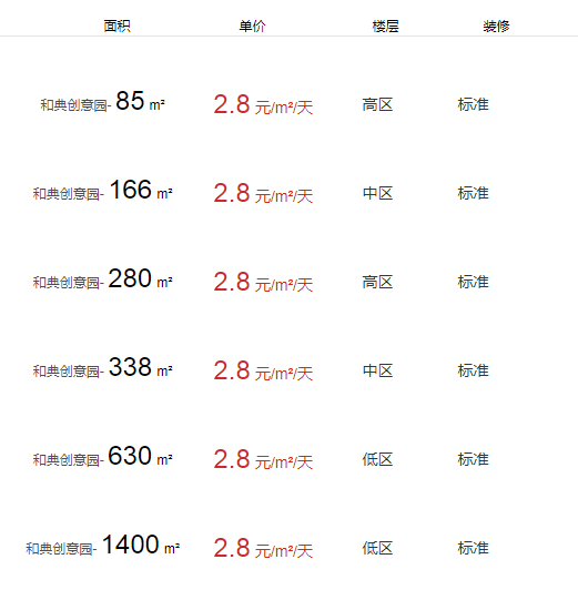 • 和典創(chuàng)意園辦公室出租及租金