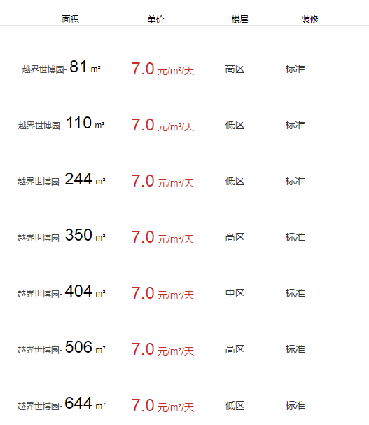 越界世博園辦公室出租及租金