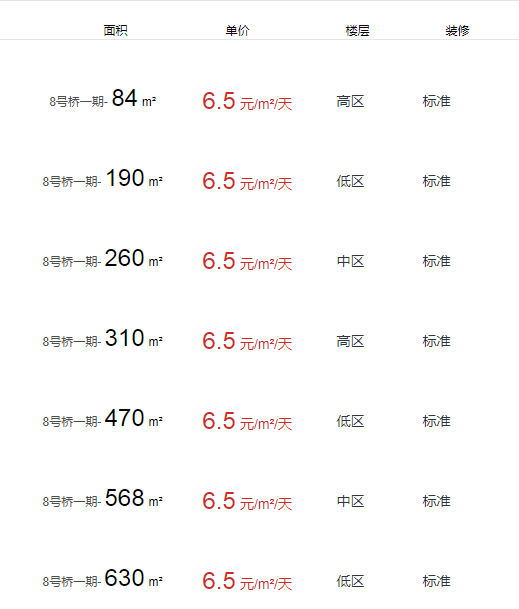 8號橋一期辦公室出租及租金