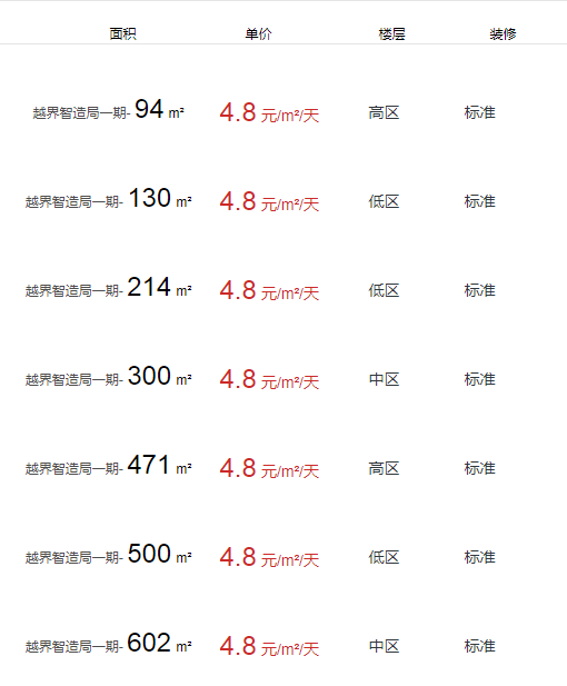 越界智造局一期辦公室出租及租金