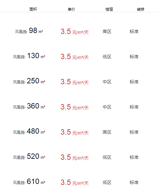 鳳凰園辦公室出租及租金