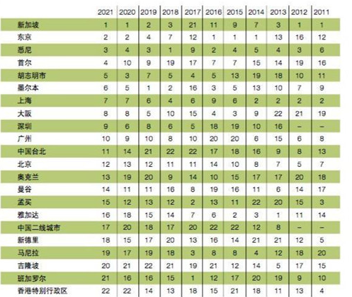 報(bào)告指出,2021年亞太地區(qū)最具投資和發(fā)展前景排名前六名的城市分別是新加坡、東京、悉尼、首爾、胡志明市、墨爾本,主要由具有穩(wěn)定和長期前景的大型防御性市場主導(dǎo),去年排名前六的城市中有5座再次躋身2021年投資前景最好的6座城市。而中國的上海、深圳、廣州分別位列第七、第九和第十名。