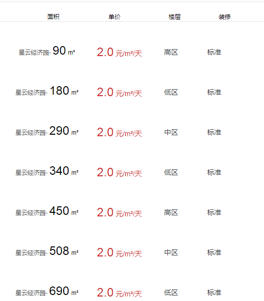 星云經(jīng)濟(jì)園辦公室出租及租金