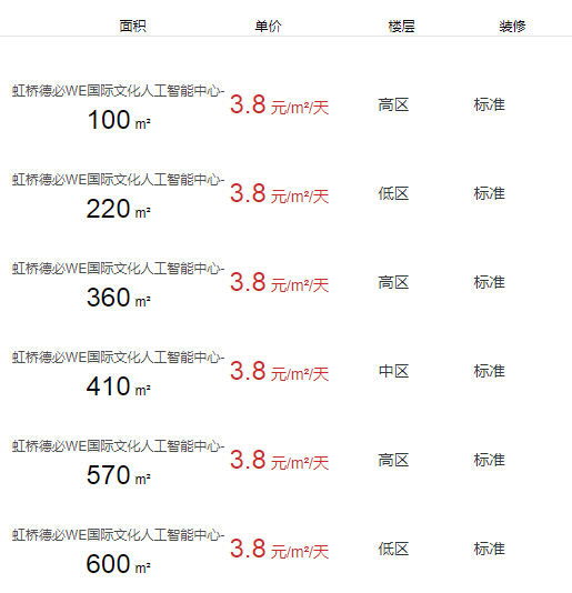 虹橋德必WE國際文化人工智能中心辦公室出租及租金