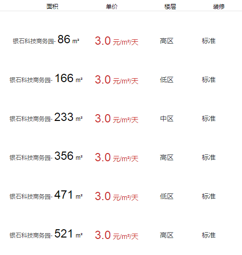 銀石科技商務(wù)園辦公室出租及租金