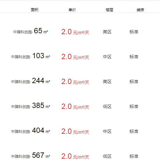 • 中臻科創(chuàng)園辦公室出租及租金