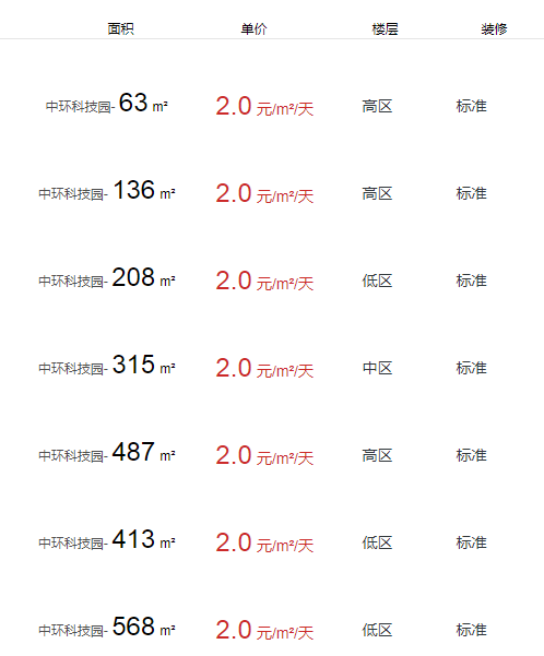 中環(huán)科技園辦公室出租及租金
