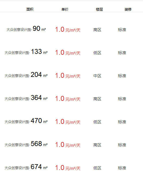 大眾創(chuàng)意設(shè)計園辦公室出租及租金