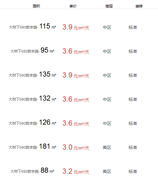 大樹下680數(shù)字園辦公室出租及租金