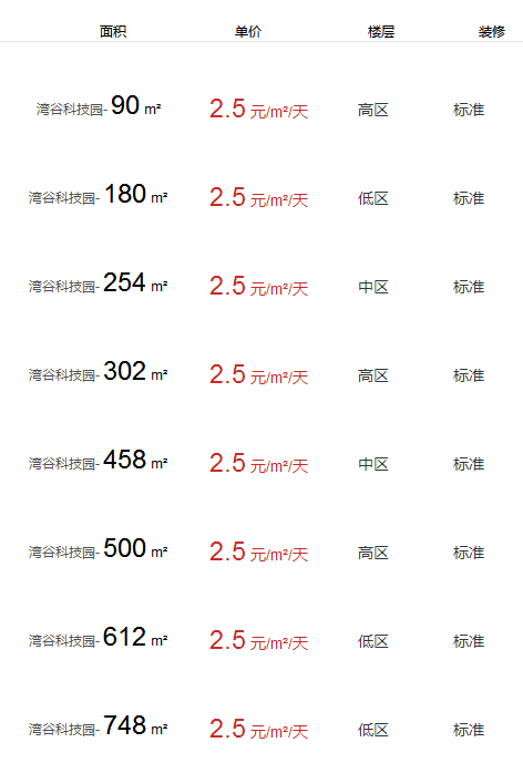 灣谷科技園辦公室出租及租金