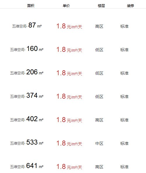 五維空間辦公室出租及租金