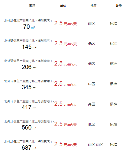 北外環(huán)信息產(chǎn)業(yè)園(北上海創(chuàng)意港)辦公室出租及租金