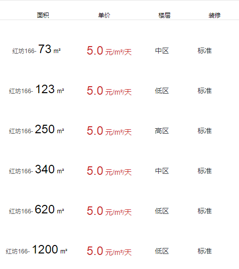紅坊166辦公室出租及租金