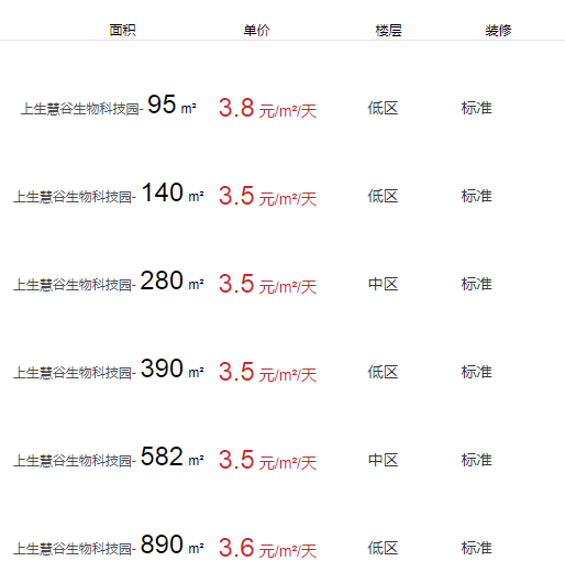 上生慧谷生物科技園辦公室出租及租金