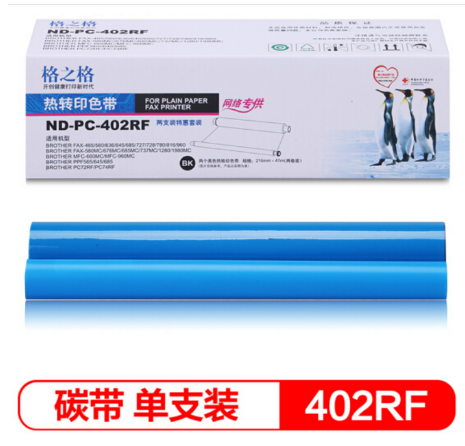 格之格ND-PC-402RF傳真機(jī)色帶,兩卷裝能用兩年,更換后顏色很好,更換也比較方便,裝上去傳真機(jī)上復(fù)印出來的字體很清晰,同事都反應(yīng)比之前用的那種好用多了,解決了老舊型號打印機(jī)的問題。