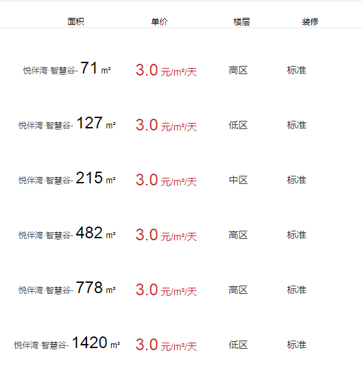 悅伴灣-智慧谷有面積出租嗎?