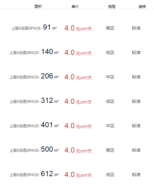 上服X創(chuàng)邑SPACE有面積出租嗎?