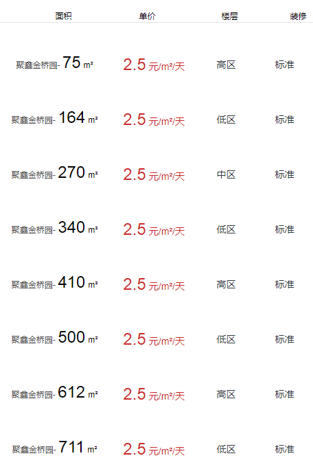 聚鑫金橋園辦公室出租及租金