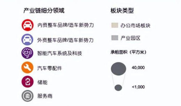 上海產(chǎn)業(yè)園區(qū)內(nèi)承載了眾多此類企業(yè)的租賃需求,以整車品牌商為例,許多公司選擇在漕河涇、張江等產(chǎn)業(yè)園區(qū)板塊內(nèi)的獨(dú)棟項(xiàng)目作為其總部與研發(fā)中心。張江集成電路半導(dǎo)體等產(chǎn)業(yè)基礎(chǔ)成為車載芯片以及造車品牌研發(fā)的辦公首選地之一;金橋板塊借助其傳統(tǒng)制造業(yè)的優(yōu)勢(shì),吸引了眾多新勢(shì)力品牌以及智能技術(shù)公司。
