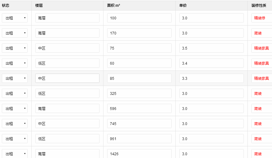 租金范圍:2.5-3.0