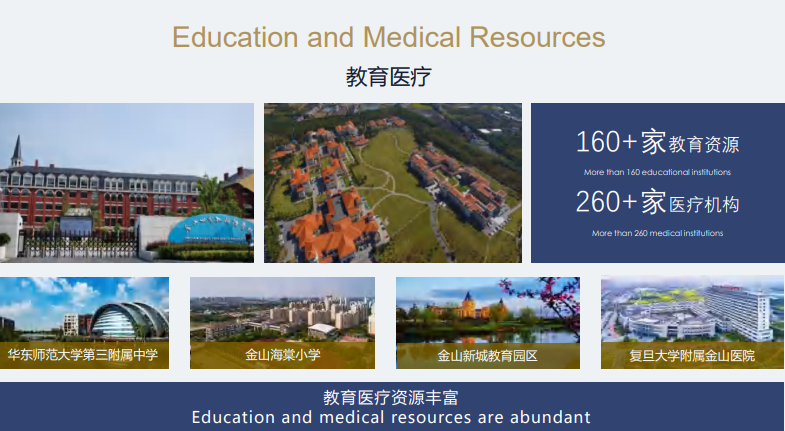 區(qū)域內(nèi)有金山萬(wàn)達(dá)廣場(chǎng)、百聯(lián)金山購(gòu)物中心、紅星美凱龍等商業(yè)資源。世界外國(guó)語(yǔ)學(xué)校、蒙山中學(xué)、華東師范大學(xué)第三附屬中學(xué)等一站式教育資源。復(fù)旦大學(xué)附屬金山醫(yī)院、公共衛(wèi)生中心等醫(yī)療資源。上海灣區(qū)科創(chuàng)大廈、金山工商聯(lián)大廈、灣區(qū)云谷等產(chǎn)業(yè)配套。各種資源豐富,享受金山全方位紅利。