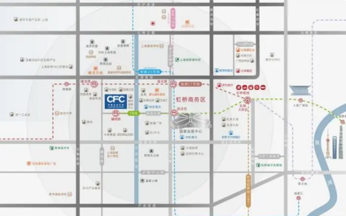 核心地段:位于虹橋商務區(qū)核心,距國家會展中心1公里,10分鐘至虹橋樞紐