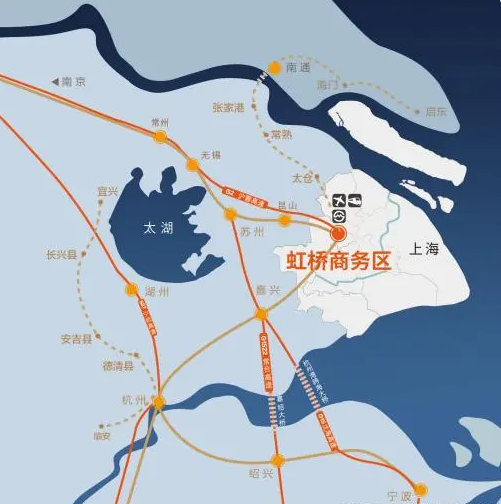 2個(gè)樞紐:虹橋國際機(jī)場、虹橋火車站
