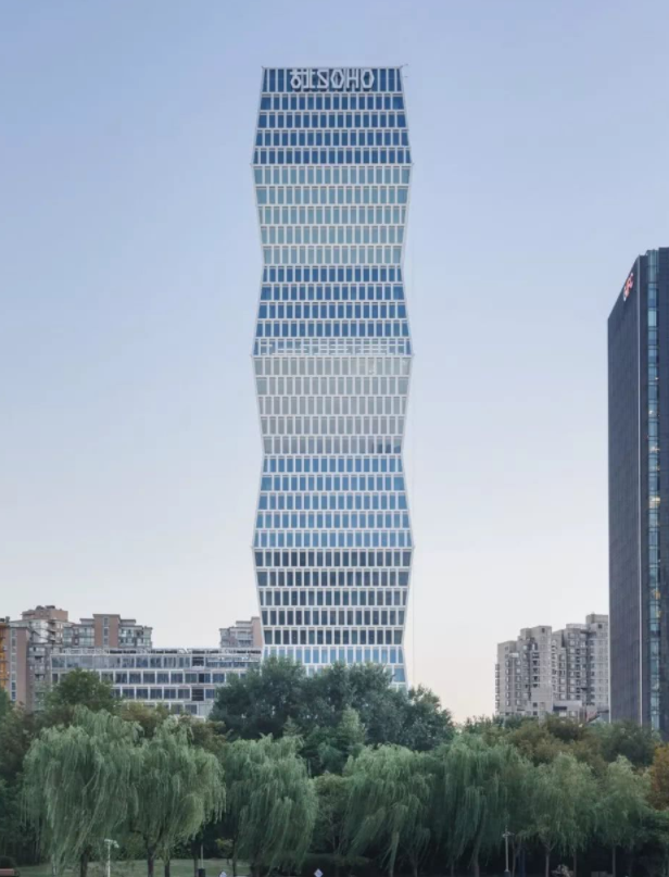 整個(gè)古北SOHO分為兩棟:39層的A座和12層的B,兩棟樓相輔相成,通過4層高的空中連廊