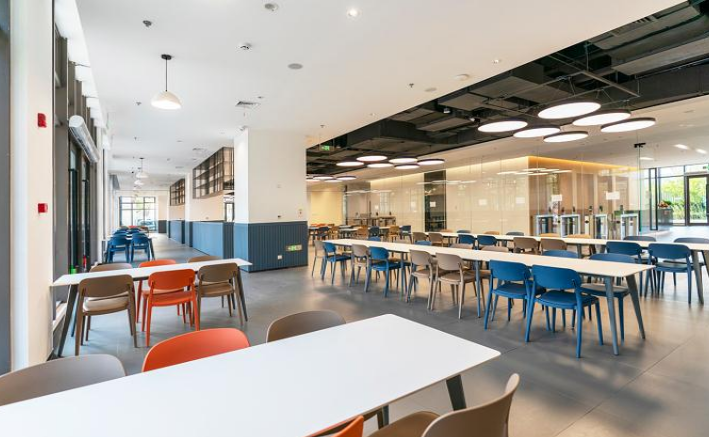 生活:雙食堂可容1,000人,文體中心、咖啡店、商超一應(yīng)俱全。