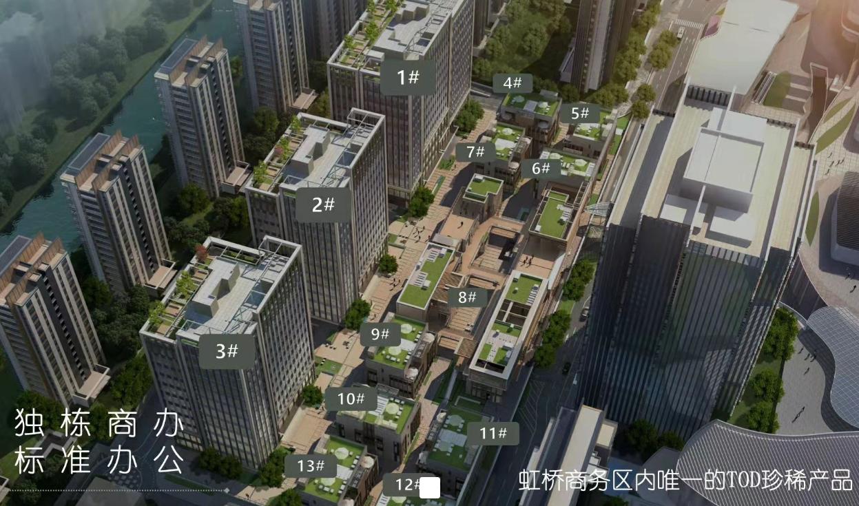 三、項目:“天空萬科中心”是萬科商辦品牌“中心系”的核心作品之一,是萬科TOD綜合體所自帶的商辦產(chǎn)品。以“TOD起勢時代虹橋”為理念,告別傳統(tǒng)單向度辦公,通過辦公+商業(yè)+立體交通+文化+居住的復合型業(yè)態(tài),提供了全新的辦公體驗,助推企業(yè)的發(fā)展。項目總體建筑約80萬方,由住宅、辦公、商業(yè)、幼兒園等業(yè)態(tài)構(gòu)成,屬于地鐵口大型城市綜合體,自帶10萬方商業(yè)。首期商業(yè)包含3棟標準辦公和9棟獨棟辦公以及1棟集中式商業(yè), 產(chǎn)品充分考量智慧、生態(tài)、可持續(xù)等因素,以精細化標準服務企業(yè)辦公;打造長三角總部辦公樓。