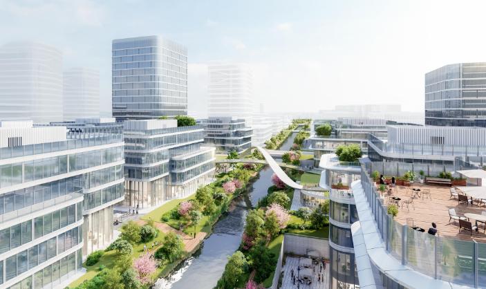 建筑組成:3棟超高品質(zhì)寫(xiě)字樓+12棟研發(fā)總部獨(dú)棟