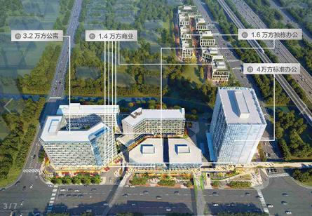 項(xiàng)目占地近3.3萬方,分南北兩個(gè)地塊,由12棟建筑組成。涵蓋了標(biāo)準(zhǔn)寫字樓、獨(dú)棟辦公、體驗(yàn)式商業(yè)街區(qū)、全齡公寓酒店、P+R停車場。總建筑面積約16萬方,包括約5.6萬方辦公面積、約1.4萬方商業(yè)面積和約3.2萬方酒店面積,其中酒店為開發(fā)商自持,未來會(huì)以心地輕奢公寓,輕迎青年公寓,活力頤養(yǎng)公寓三大品牌類型服務(wù)于各年齡層的客戶群。